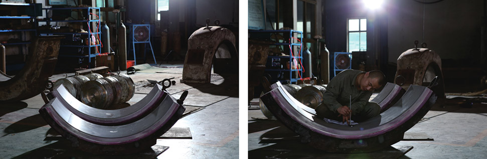 巴氏合金軸瓦、密封瓦局部補(bǔ)焊后刮研,達(dá)到原始設(shè)計(jì)尺寸。